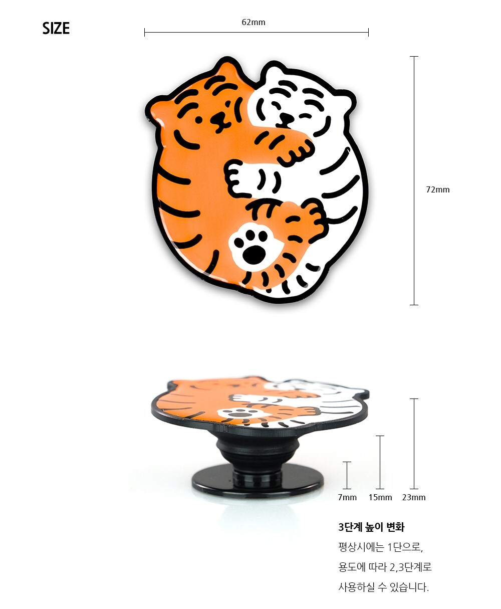 스마트톡은 스마트폰 뒷면에 붙여 사용하는 악세사리로, 스마트폰 사용 시에 안정적인 터치감과 편리함을 더해주는 제품이에요. 무직타이거의 뚱랑이 스마트톡은 실용성과 귀여움, 그리고 유니크함까지 모두 있는 필수템입니다!