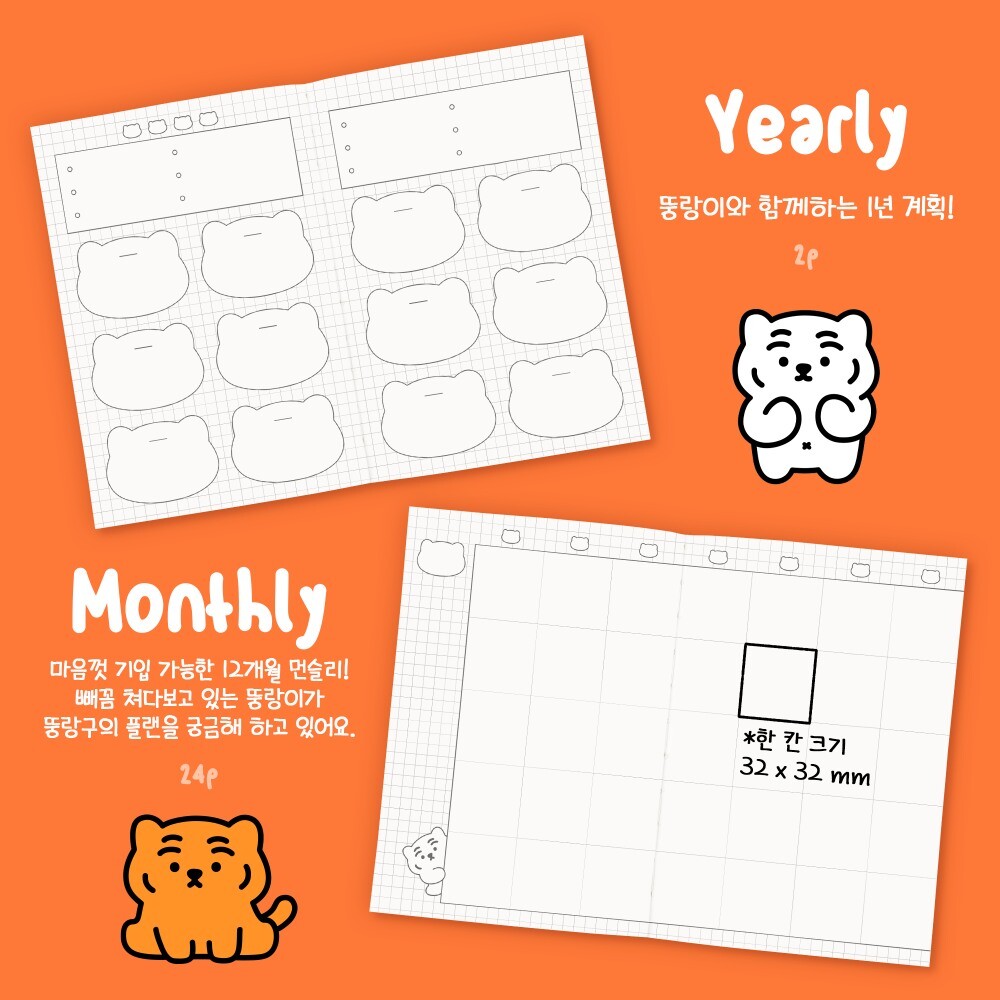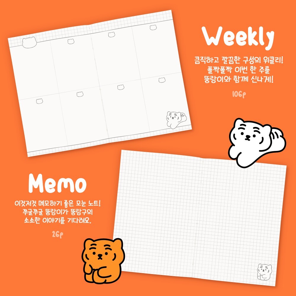 무직타이거 뚱랑이 다이어리 2종 (만년)