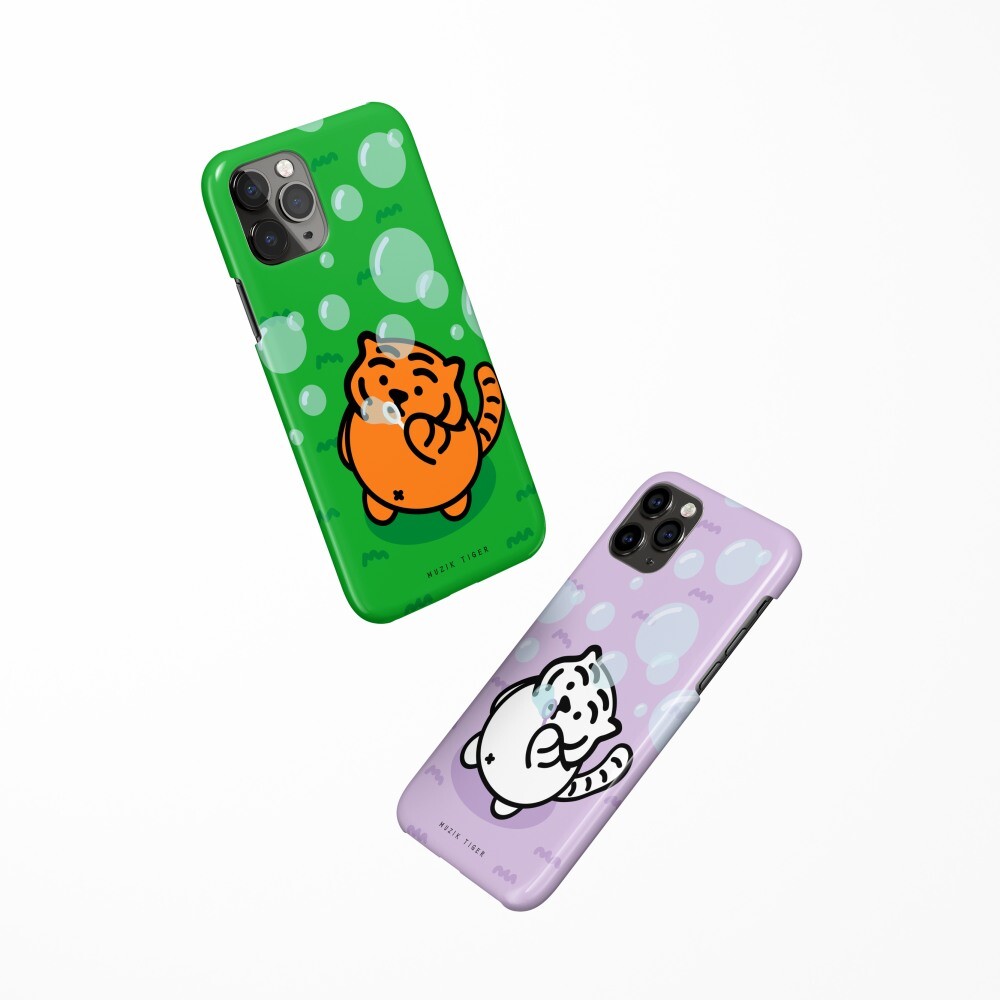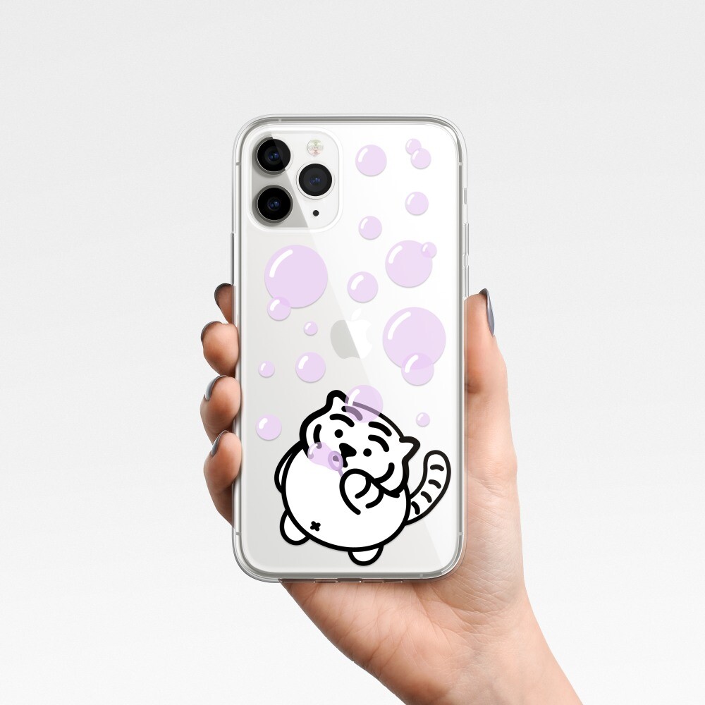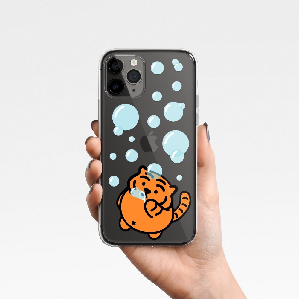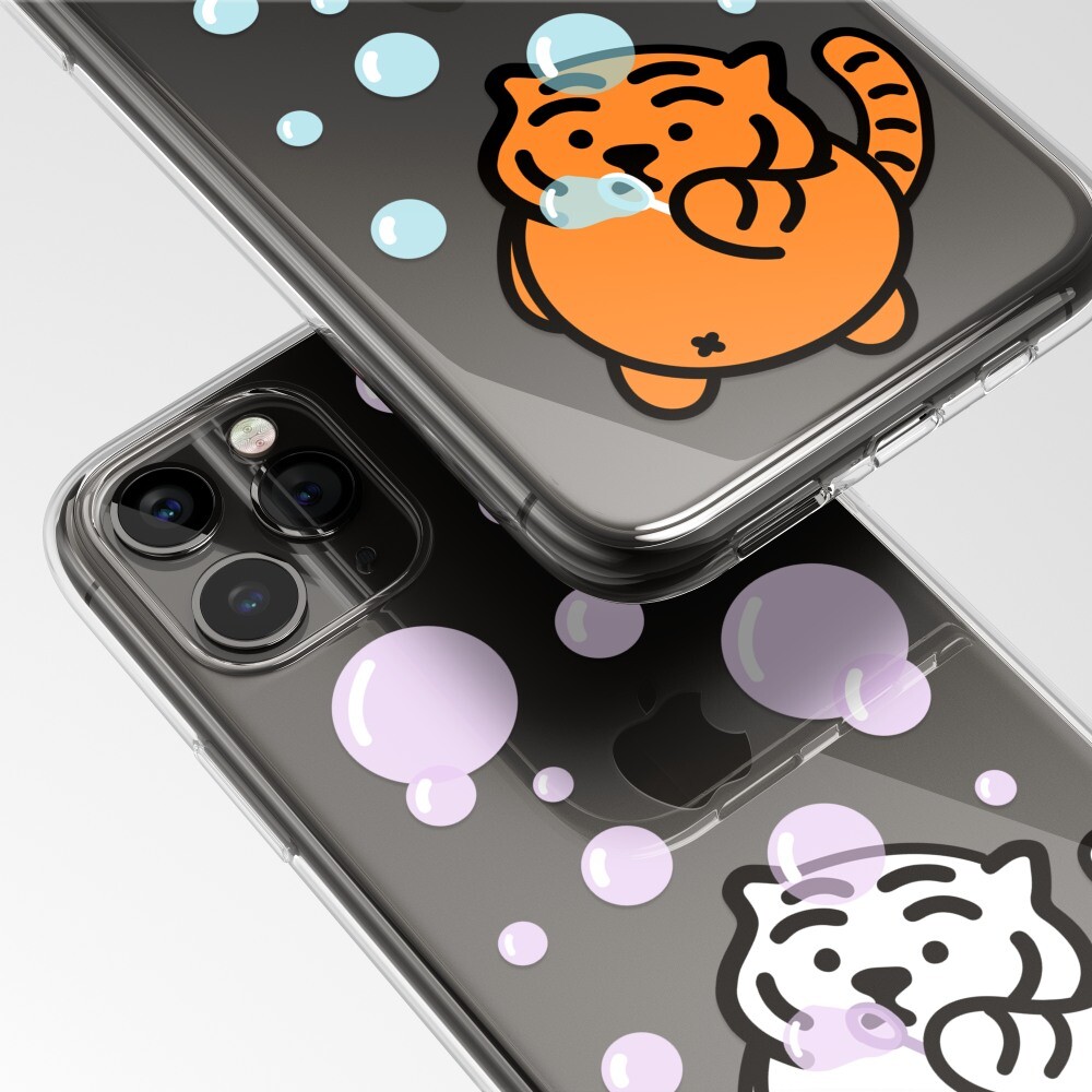 버블 타이거 폰케이스에는 비눗방울 놀이를 하는 뚱랑이의 모습이 담겨있어요! 보글 보글 보글, 재밌는 비눗방울 놀이!