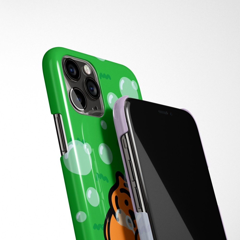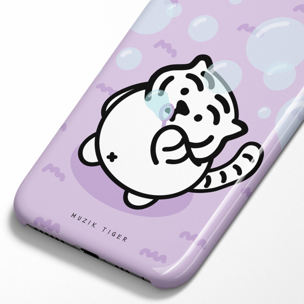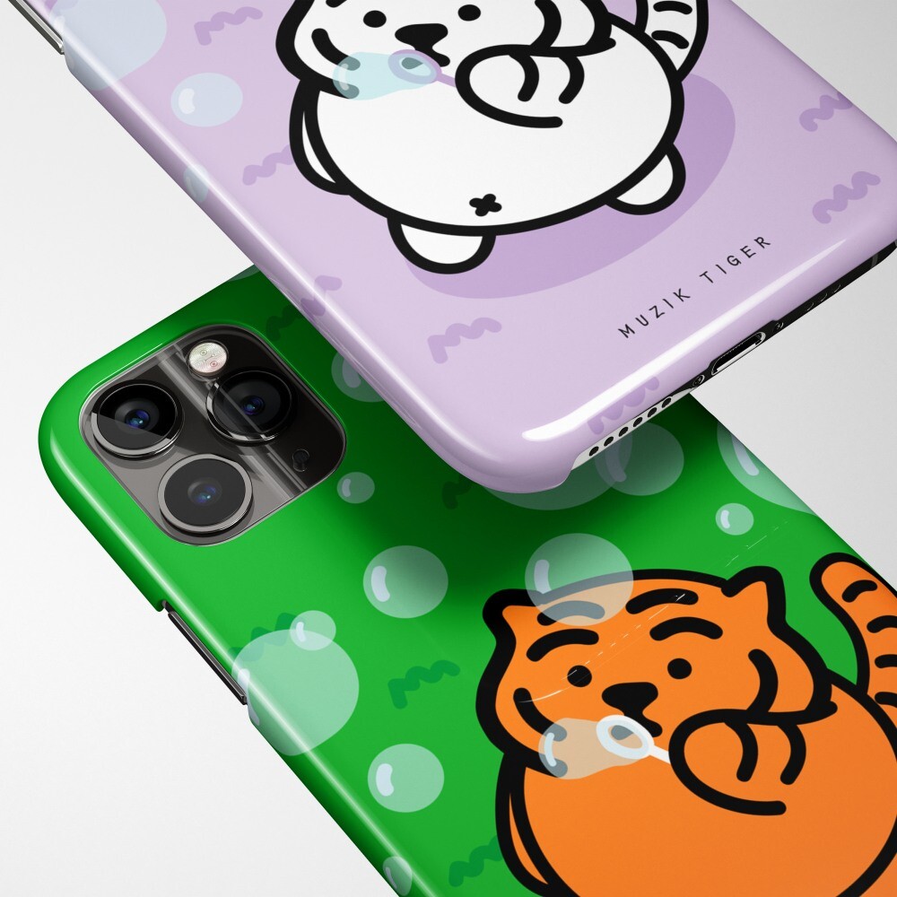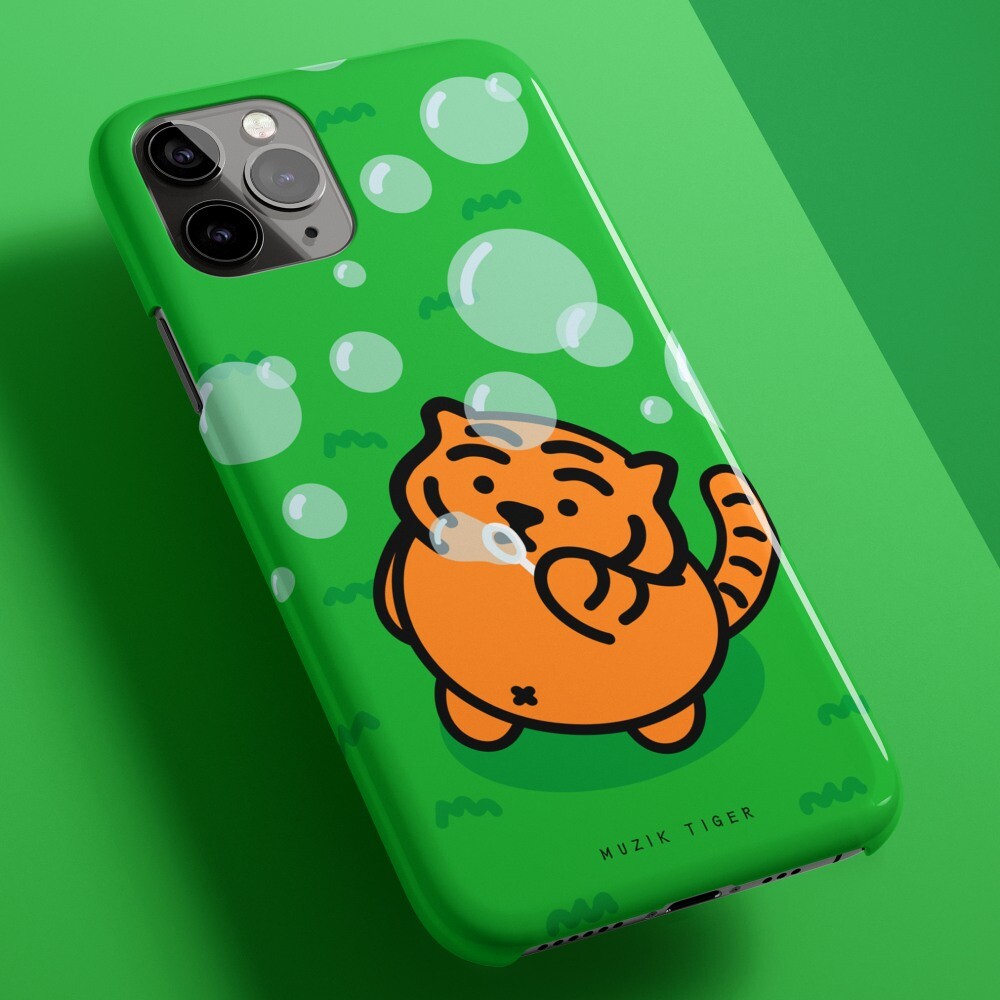 버블 타이거 폰케이스에는 비눗방울 놀이를 하는 뚱랑이의 모습이 담겨있어요! 보글 보글 보글, 재밌는 비눗방울 놀이!