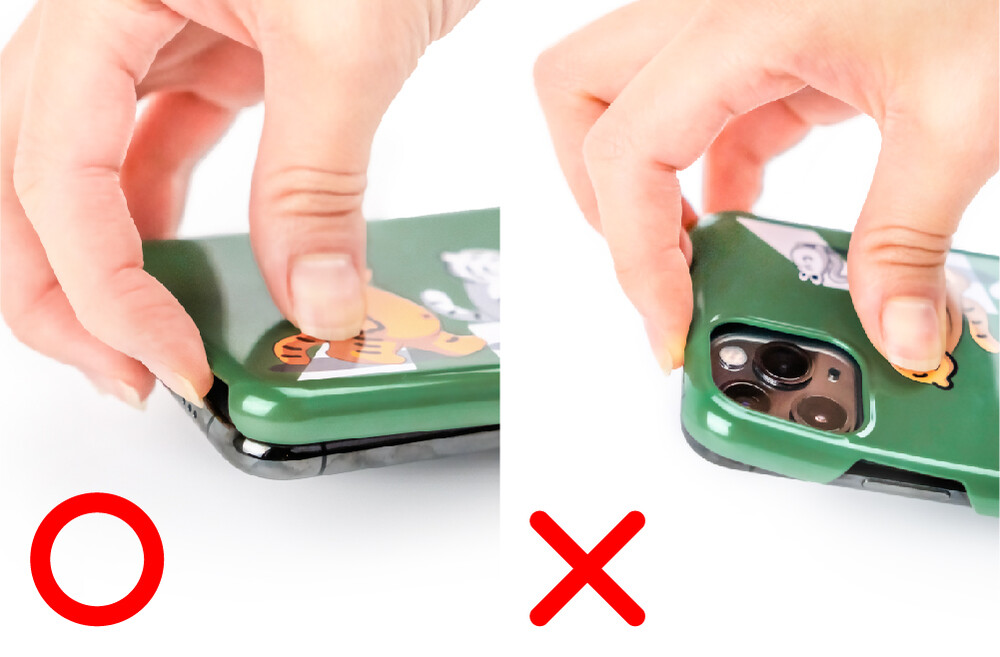 하드 케이스 분리 시 반드시 카메라 홀을 피해 하단부에서부터 분리하십시오. 카메라 홀 주변부는 상대적으로 약하기 때문에 홀을 잡고 분리하게되면 케이스가 깨지거나 손상될 수 있습니다. 이 경우 반품 또는 교환의 사유가 되지 않습니다. 반드시 주의사항을 숙지 후 사용하시기바랍니다.