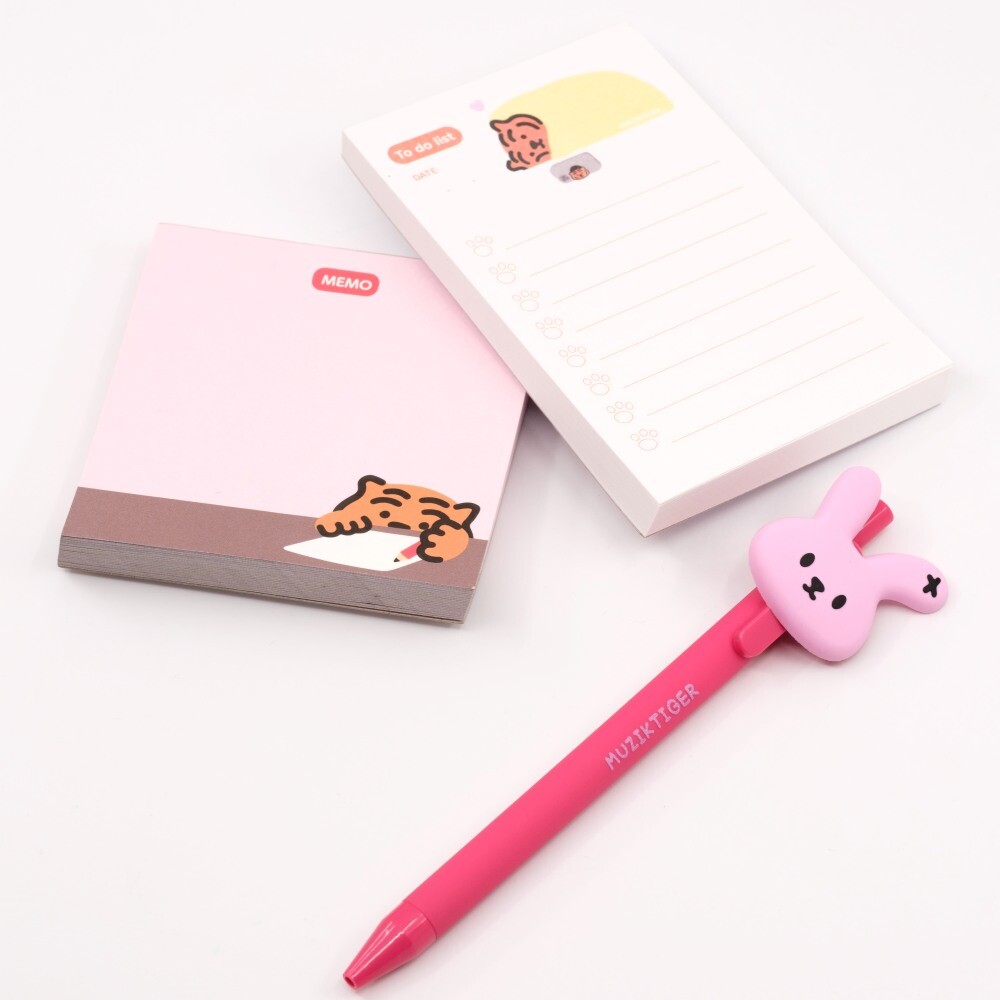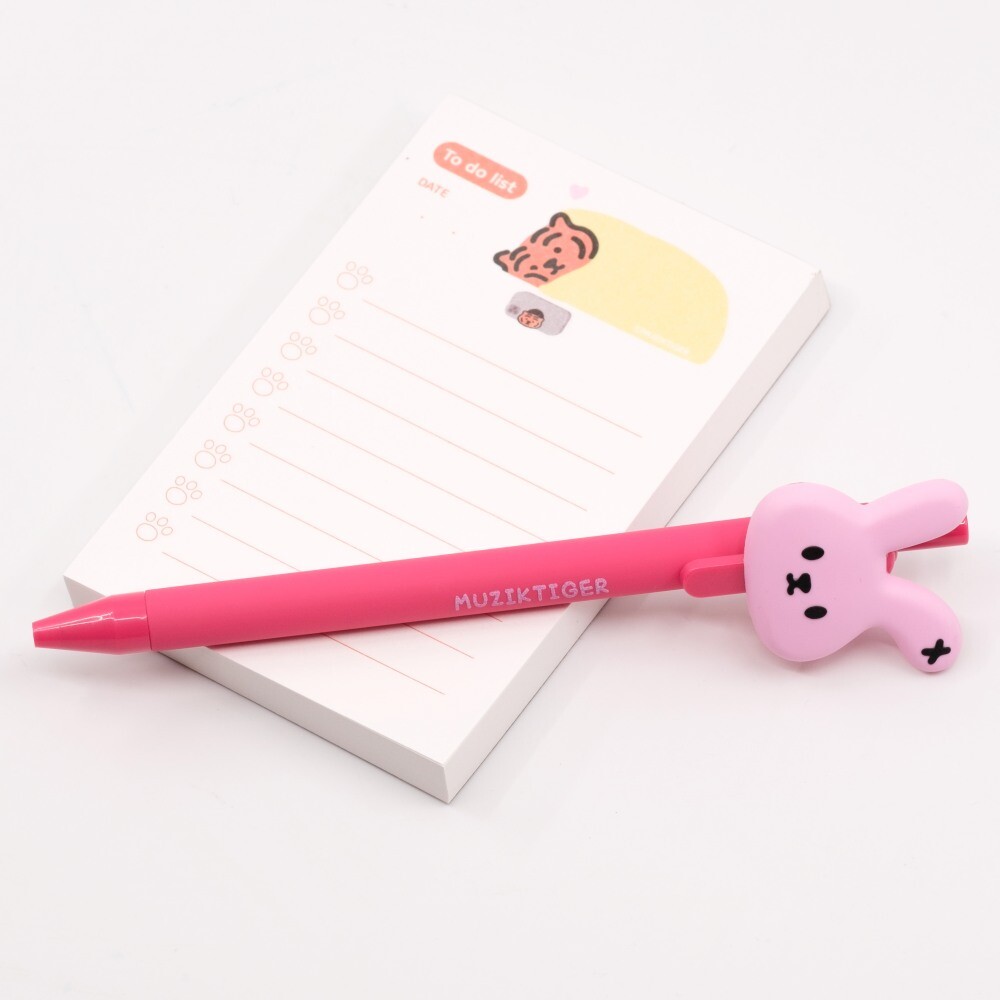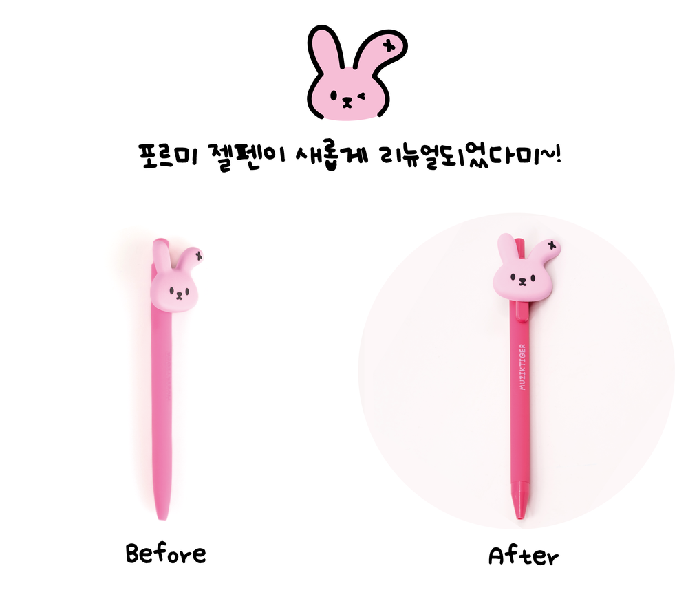 무직타이거의 젤펜 시리즈입니다. 귀여운 포르미 얼굴이 포인트로 달려있어요 :) 부드러운 젤펜이라 필기감도 좋습니다.