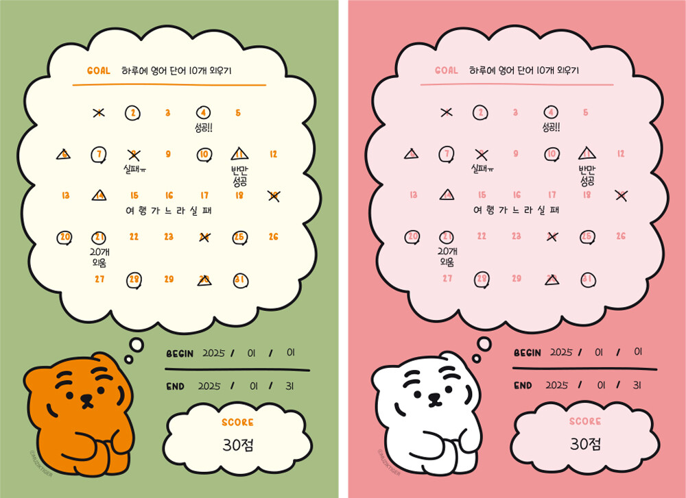 작심삼일도 쌓이면 한 달이 되고 소소한 목표들도 모이면 좋은 습관이 된답니다. 어렵다구요? 걱정마세요. 뚱랑이가 도와 줄게요.