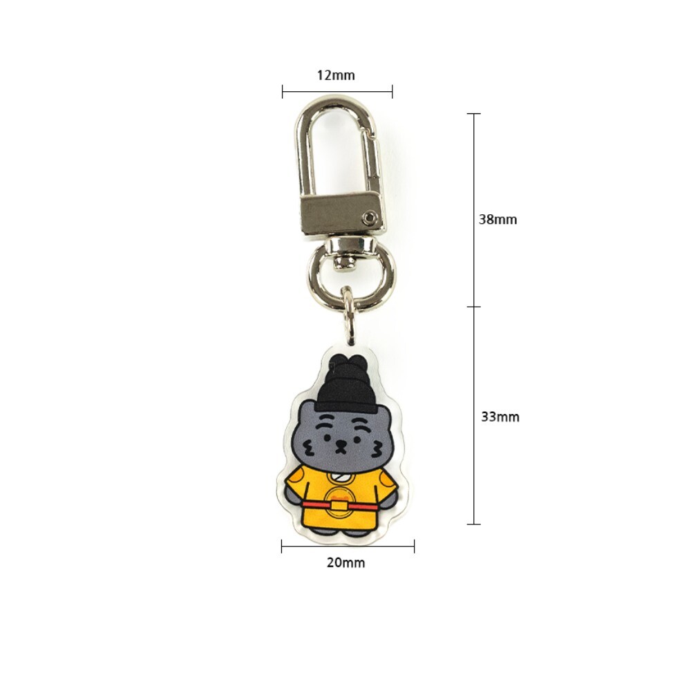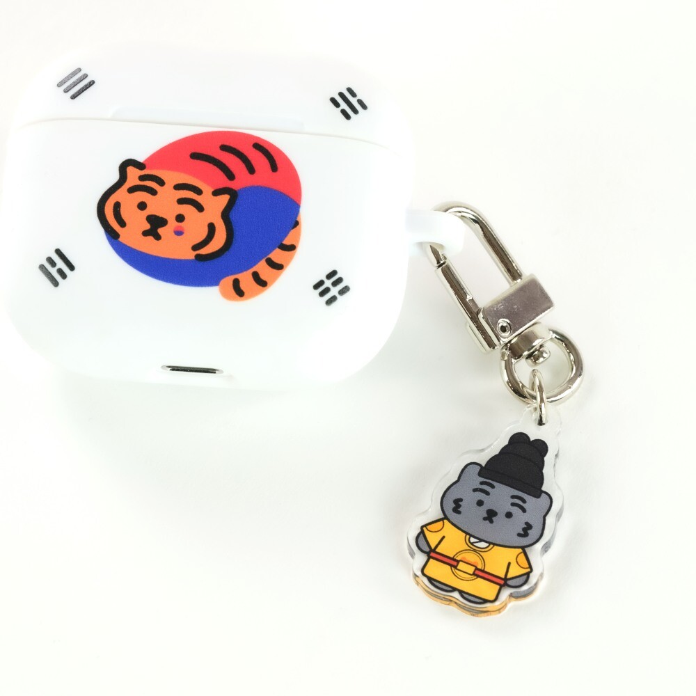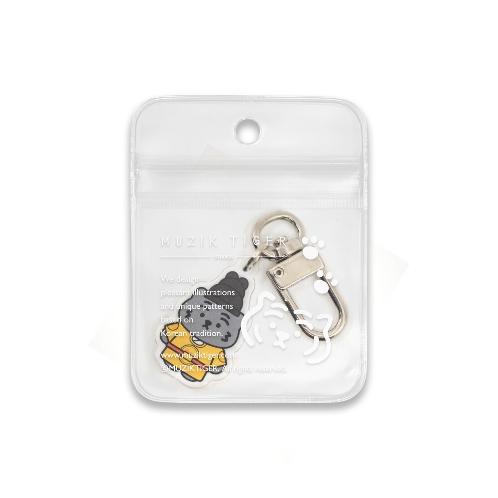 무직타이거의 흑호 대왕뚱랑이 키링입니다. 미니 사이즈로 제작되어 에어팟 케이스같은 작은 물건을 장식하게 좋습니다. 양면으로 인쇄되어 앞/뒤 구분이 없으며, 가볍고 경쾌한 아크릴 질감으로 부담없이 사용하실 수 있습니다 :)