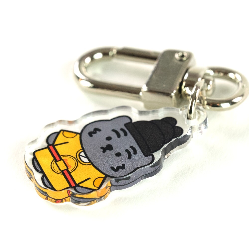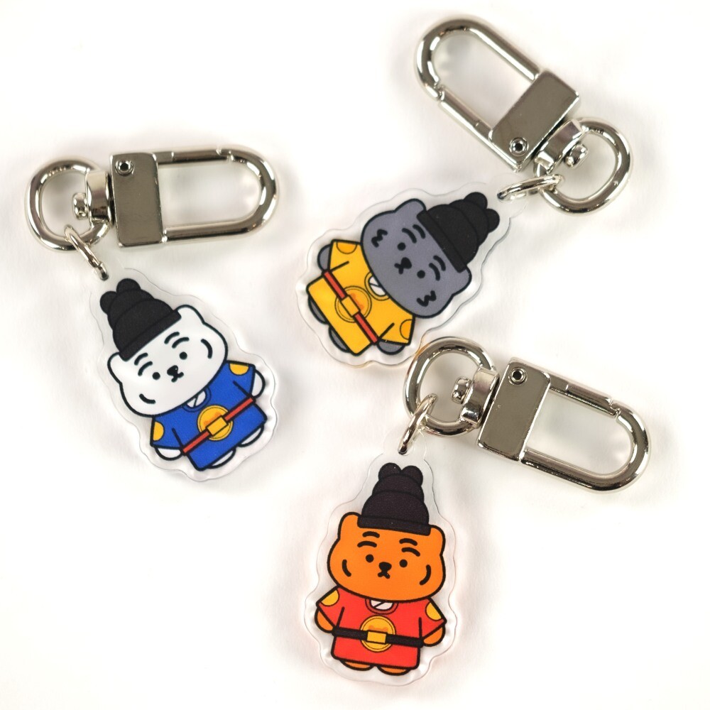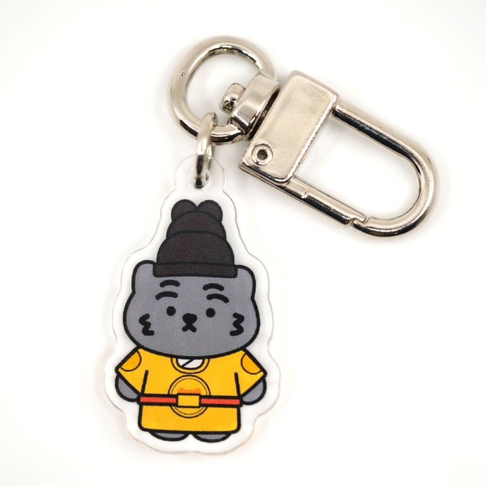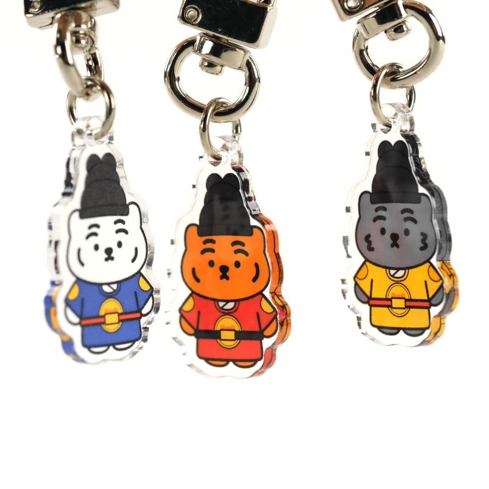 무직타이거의 흑호 대왕뚱랑이 키링입니다. 미니 사이즈로 제작되어 에어팟 케이스같은 작은 물건을 장식하게 좋습니다. 양면으로 인쇄되어 앞/뒤 구분이 없으며, 가볍고 경쾌한 아크릴 질감으로 부담없이 사용하실 수 있습니다 :)