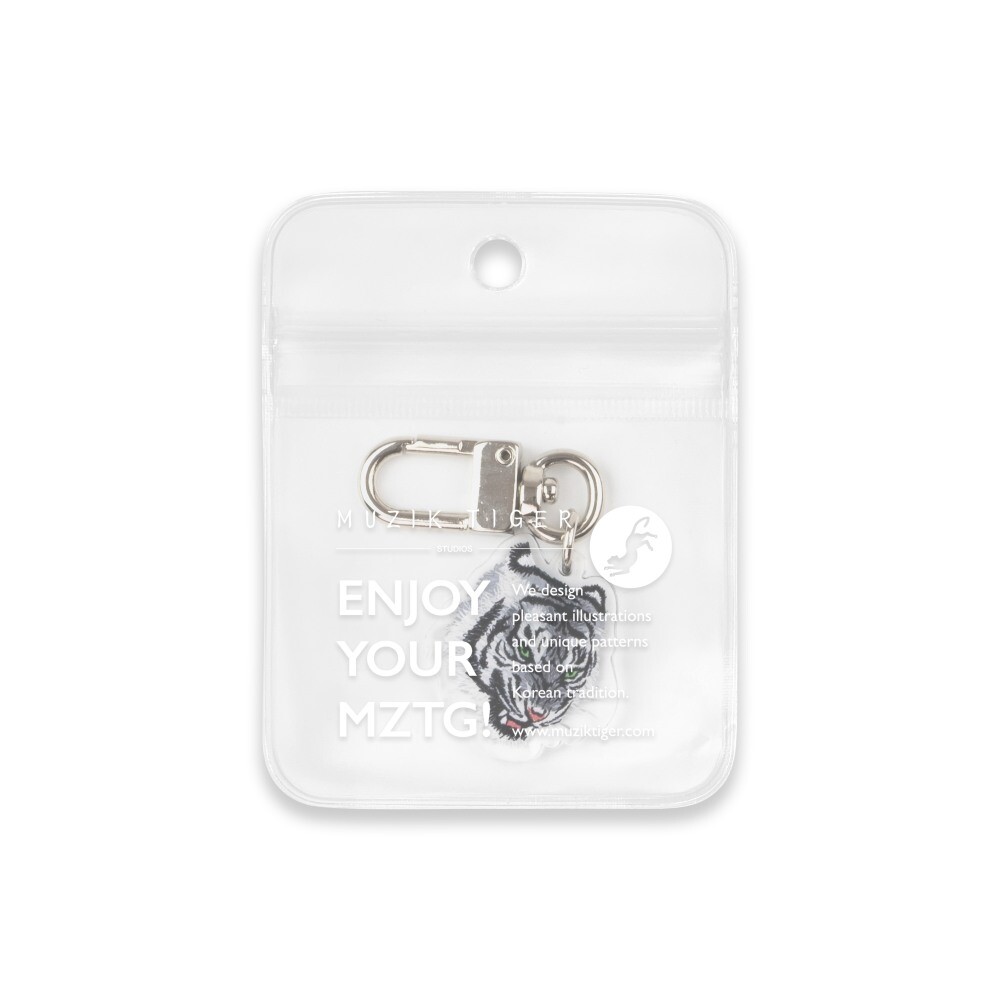 무직타이거의 판타지 타이거 백호 키링입니다. 미니 사이즈로 제작되어 에어팟 케이스같은 작은 물건을 장식하게 좋습니다. 양면으로 인쇄되어 앞/뒤 구분이 없으며, 가볍고 경쾌한 아크릴 질감으로 부담없이 사용하실 수 있습니다 :)