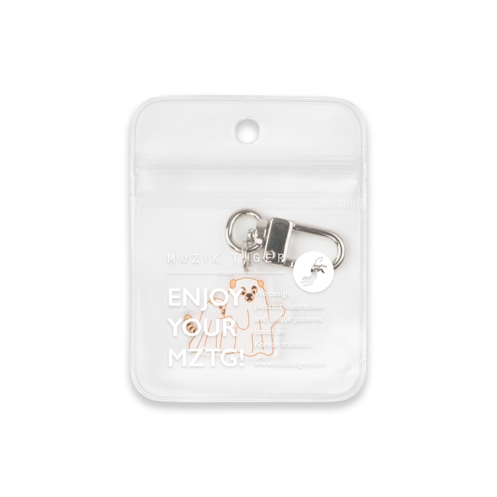 무직타이거의 고스트 허그 타이거 키링입니다. 미니 사이즈로 제작되어 에어팟 케이스같은 작은 물건을 장식하게 좋습니다. 양면으로 인쇄되어 앞/뒤 구분이 없으며, 가볍고 경쾌한 아크릴 질감으로 부담없이 사용하실 수 있습니다 :)