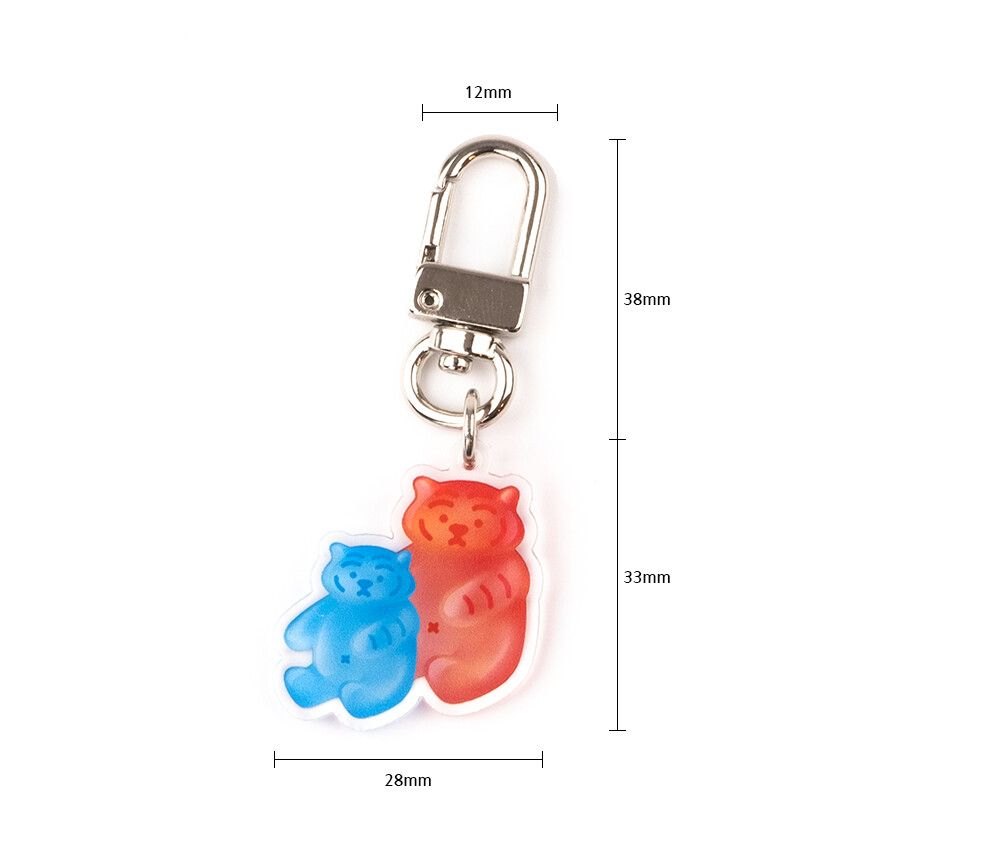 무직타이거의 젤랑이 두마리 키링입니다. 미니 사이즈로 제작되어 에어팟 케이스같은 작은 물건을 장식하게 좋습니다. 양면으로 인쇄되어 앞/뒤 구분이 없으며, 가볍고 경쾌한 아크릴 질감으로 부담없이 사용하실 수 있습니다 :)
