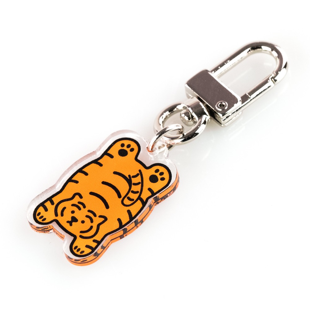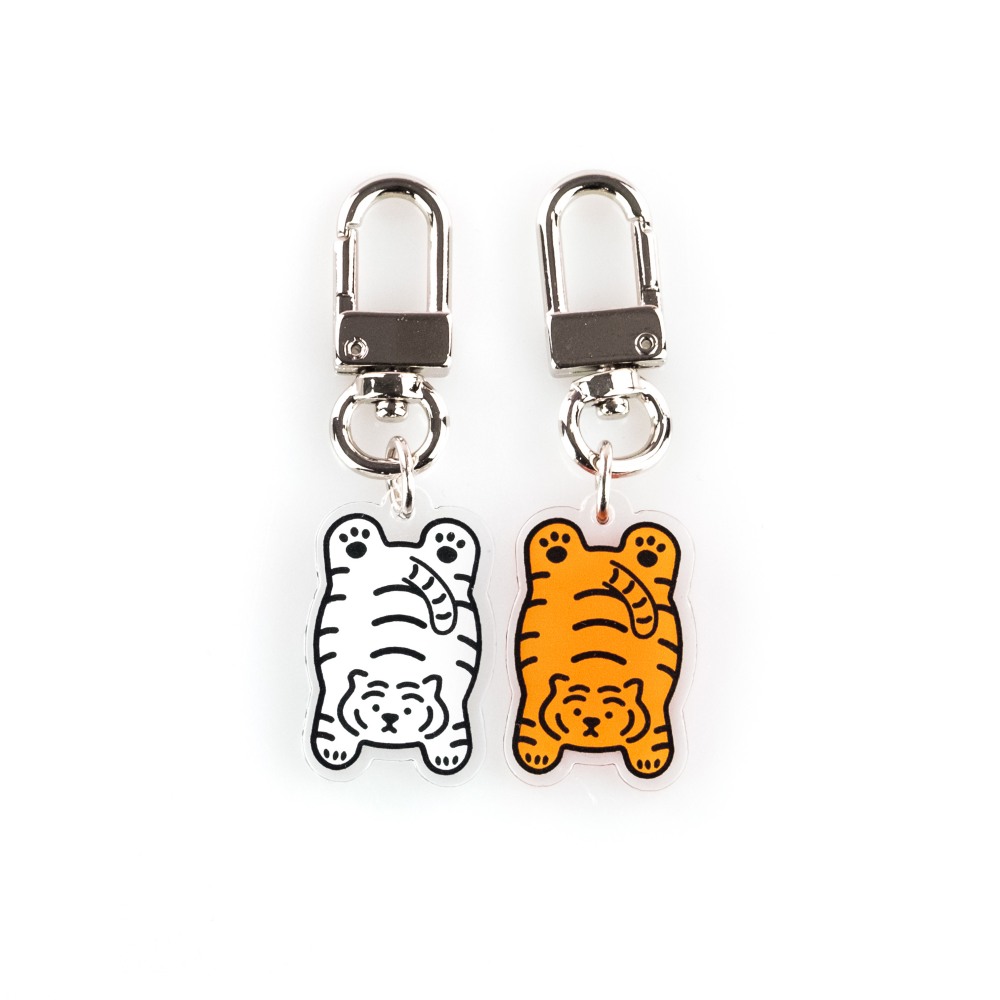 무직타이거의 철푸덕랑 적호 키링입니다. 미니 사이즈로 제작되어 에어팟 케이스같은 작은 물건을 장식하게 좋습니다. 양면으로 인쇄되어 앞/뒤 구분이 없으며, 가볍고 경쾌한 아크릴 질감으로 부담없이 사용하실 수 있습니다 :)