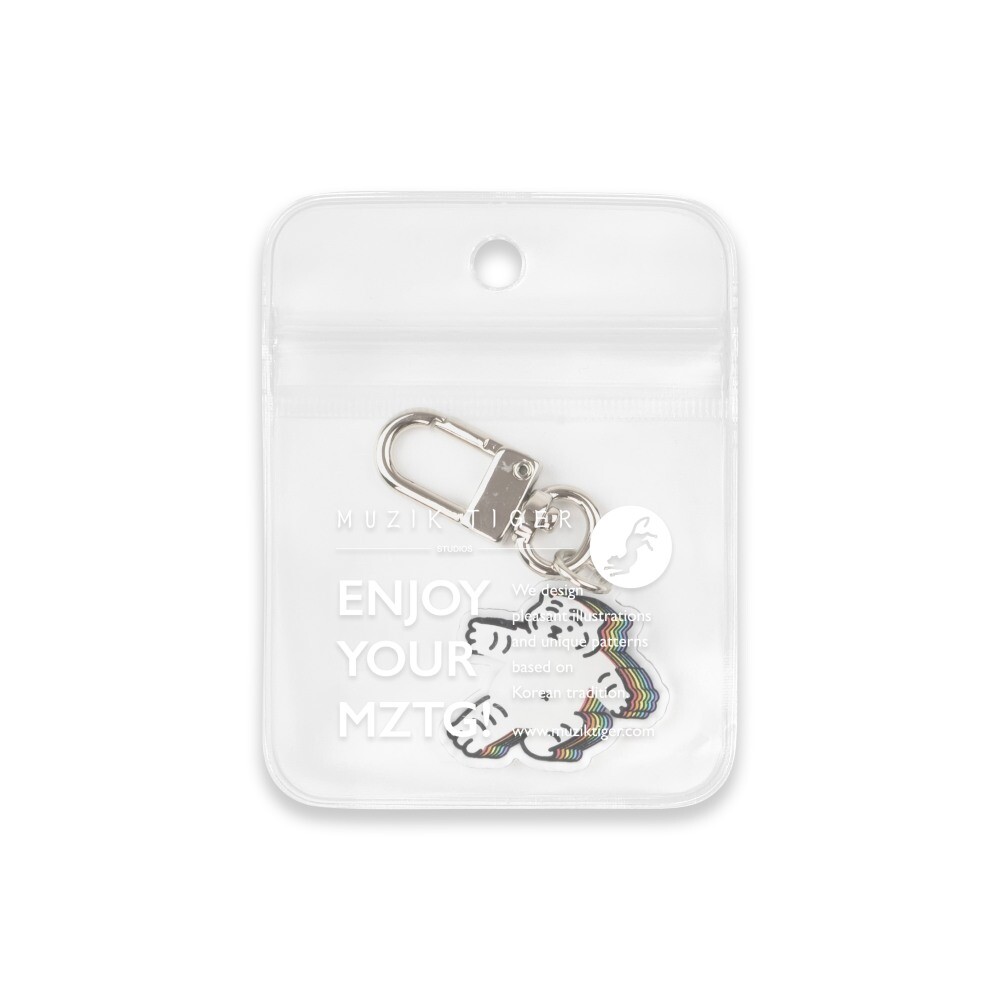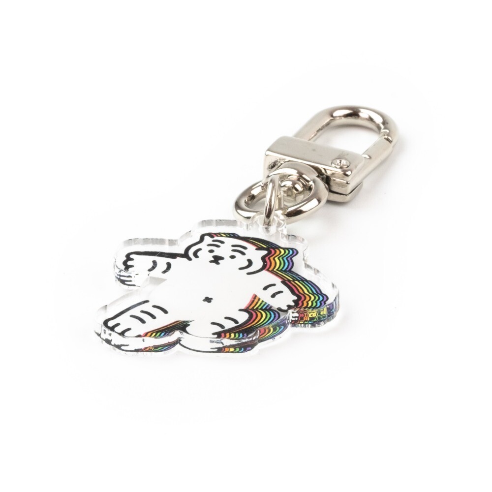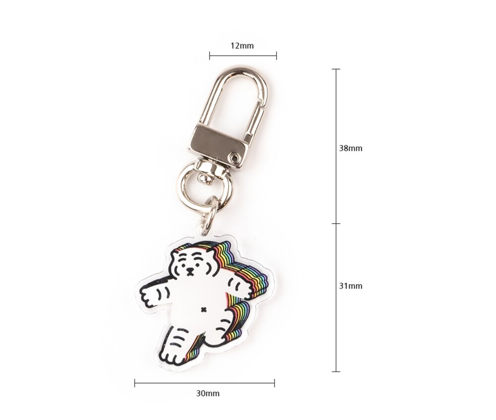 무직타이거의 레인보우 뚱랑이 키링입니다. 미니 사이즈로 제작되어 에어팟 케이스같은 작은 물건을 장식하게 좋습니다. 양면으로 인쇄되어 앞/뒤 구분이 없으며, 가볍고 경쾌한 아크릴 질감으로 부담없이 사용하실 수 있습니다 :)
