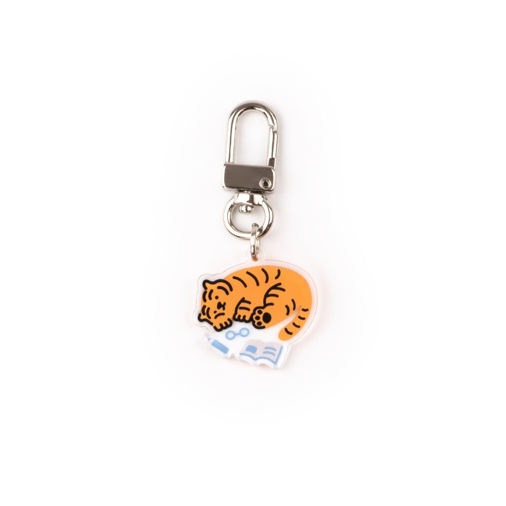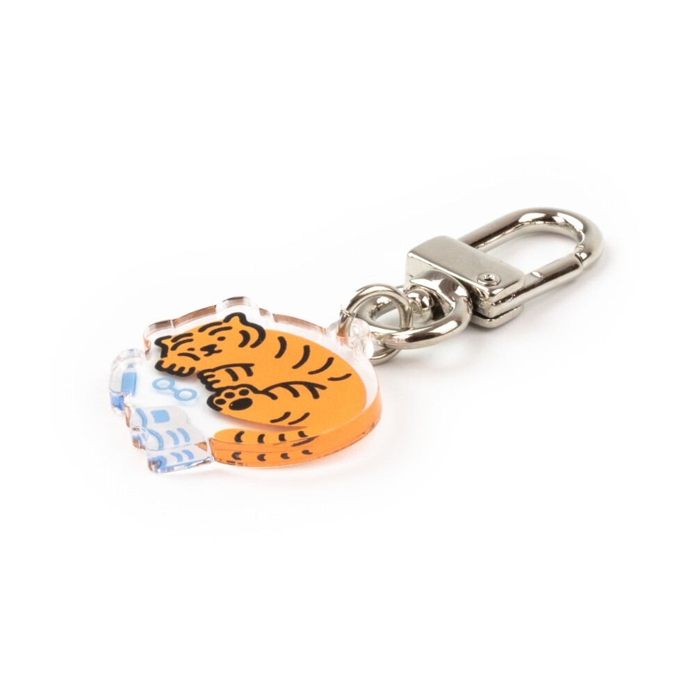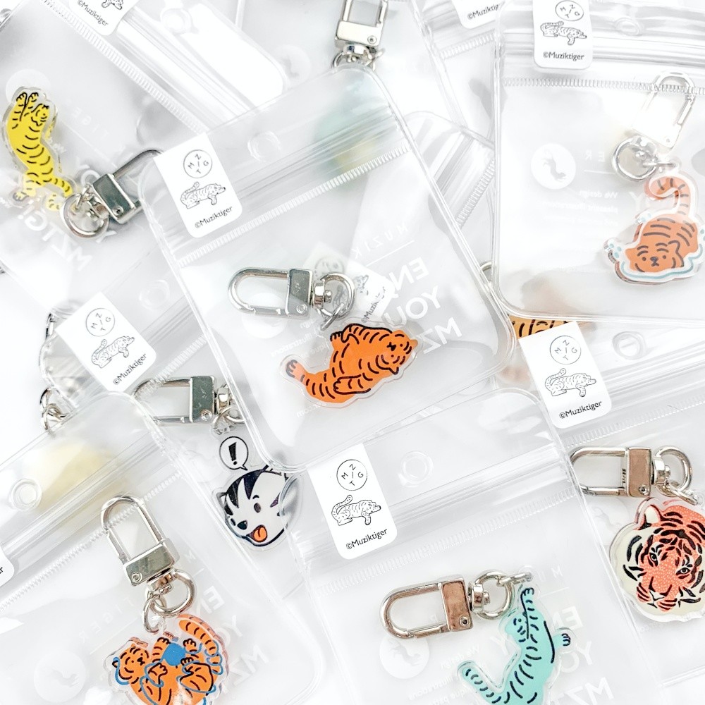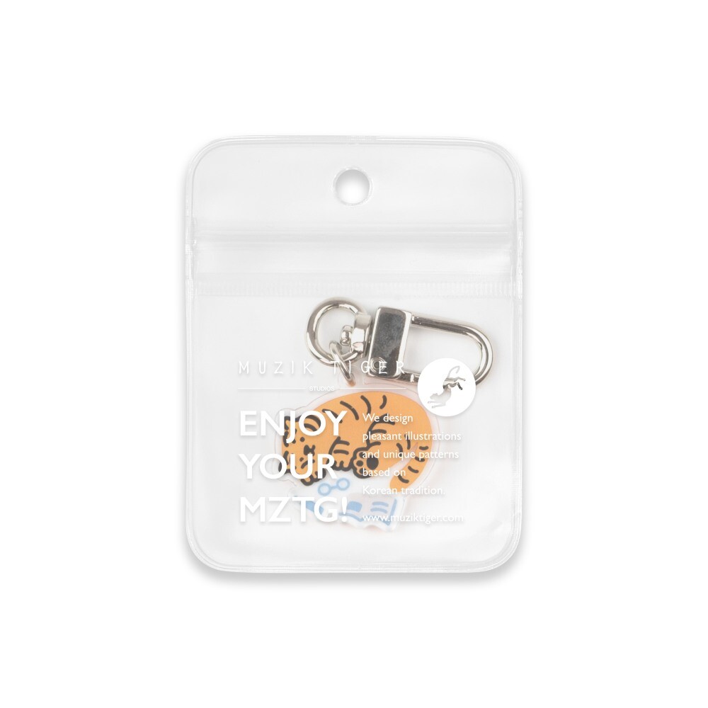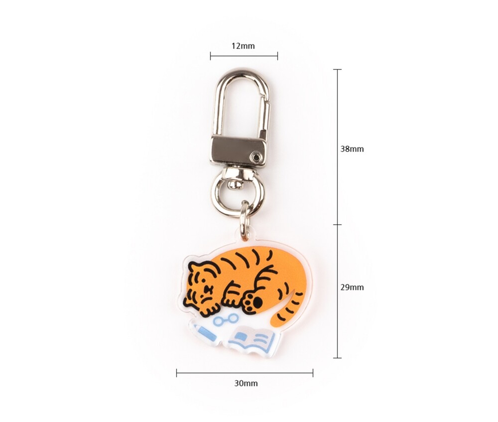 무직타이거의 슬리피 타이거 키링입니다. 미니 사이즈로 제작되어 에어팟 케이스같은 작은 물건을 장식하게 좋습니다. 양면으로 인쇄되어 앞/뒤 구분이 없으며, 가볍고 경쾌한 아크릴 질감으로 부담없이 사용하실 수 있습니다 :)