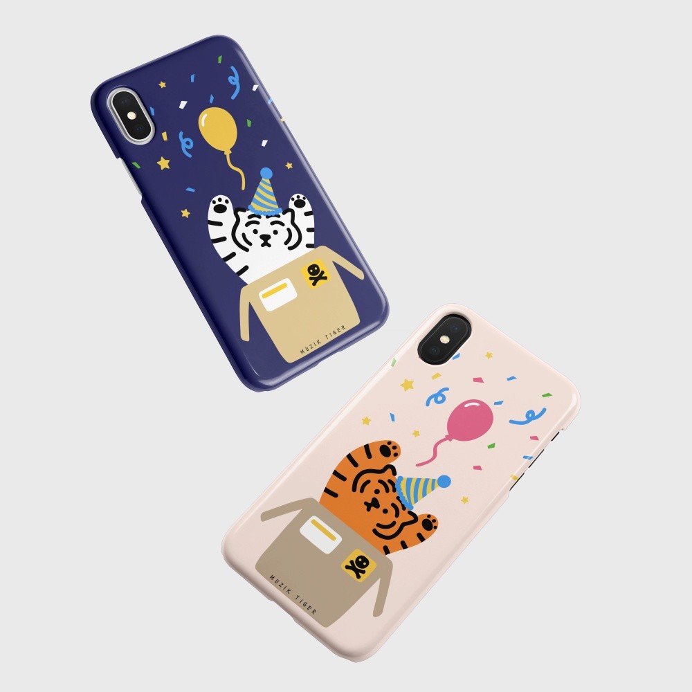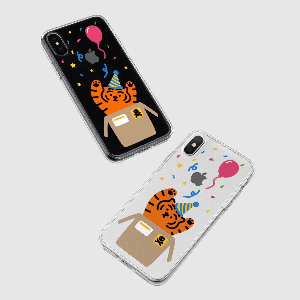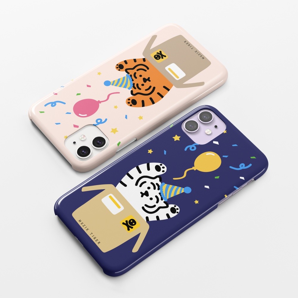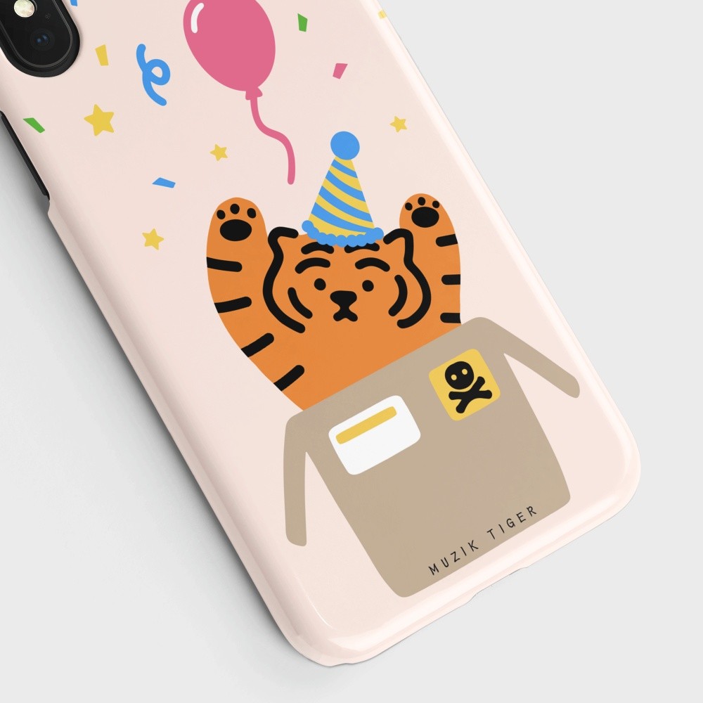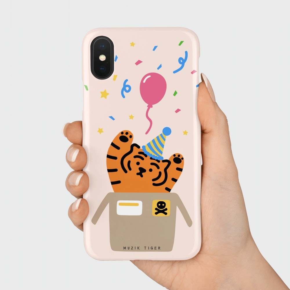 무직타이거의 <파티 타이거> 폰케이스입니다. 매일매일이 페스티벌인 파티 뚱랑이 :) 꽃가루와 함께 “서프라이즈!~”를 외치는 듯한 모양새에 보기만해도 행복해지는 기분이죠😊