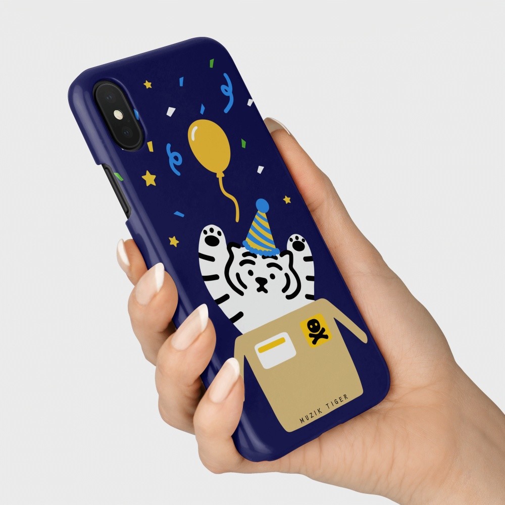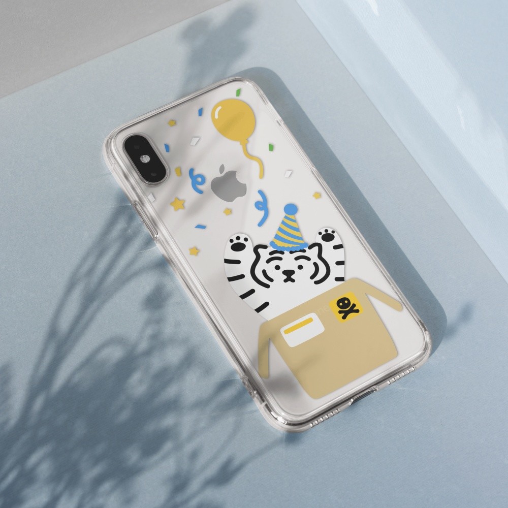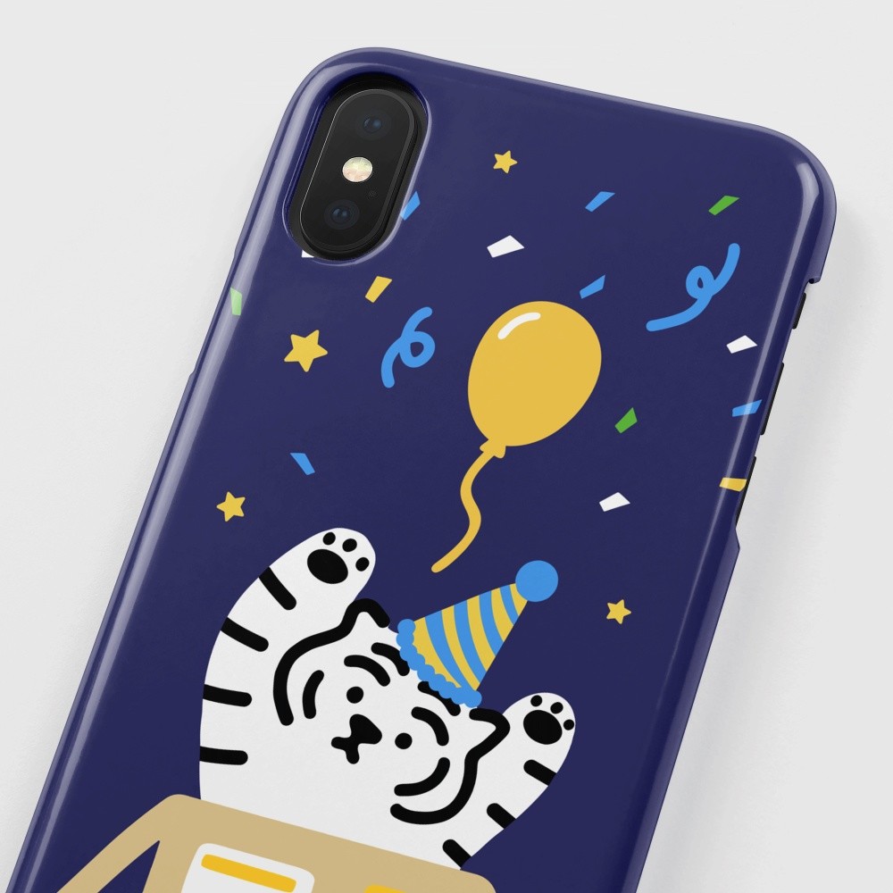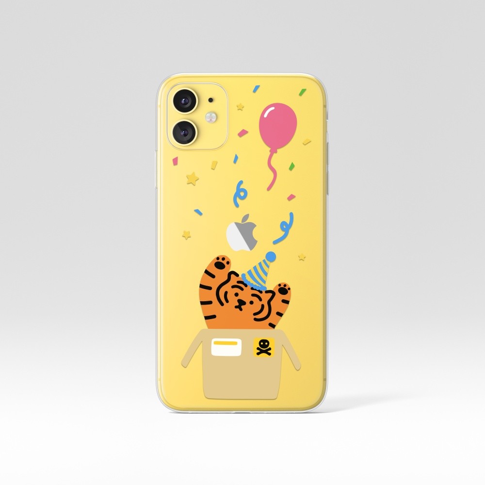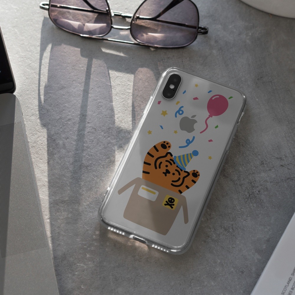 무직타이거의 <파티 타이거> 폰케이스입니다. 매일매일이 페스티벌인 파티 뚱랑이 :) 꽃가루와 함께 “서프라이즈!~”를 외치는 듯한 모양새에 보기만해도 행복해지는 기분이죠😊