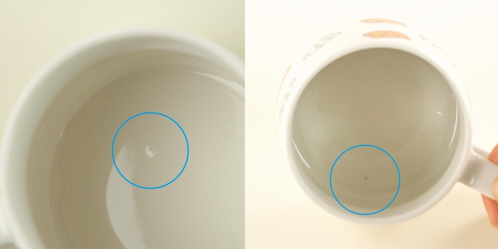 도자기제 특성상 미세한 기포와 돌기, 인쇄 시 기포로 생긴 작은 점이나 스크래치가 발견될 수 있습니다. 이는 머그컵 제작 중 생기는 자연스러운 현상으로 불량이 아니므로 교환/환불이 불가합니다. 예민하신 분은 신중히 고민 후 구매해주시기 바랍니다.