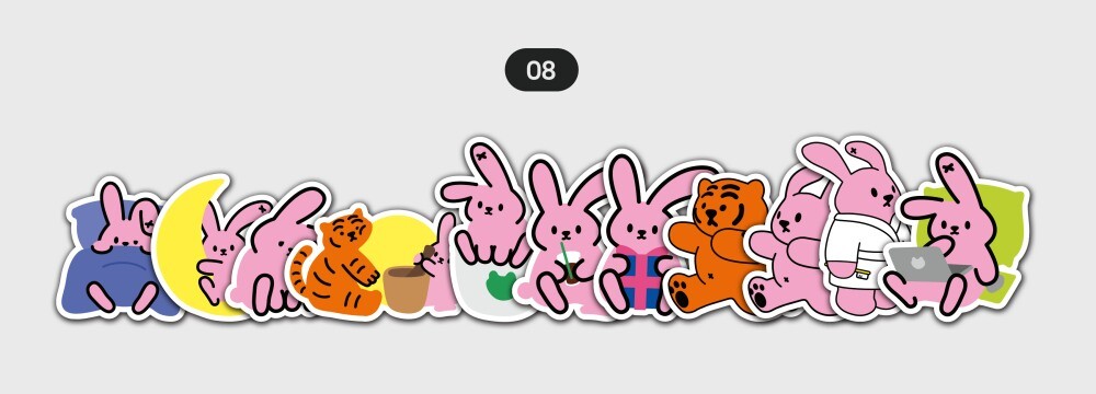 무직타이거의 스토리를 담아 11pcs로 구성한 포르미와 뚱랑이 스티커입니다.