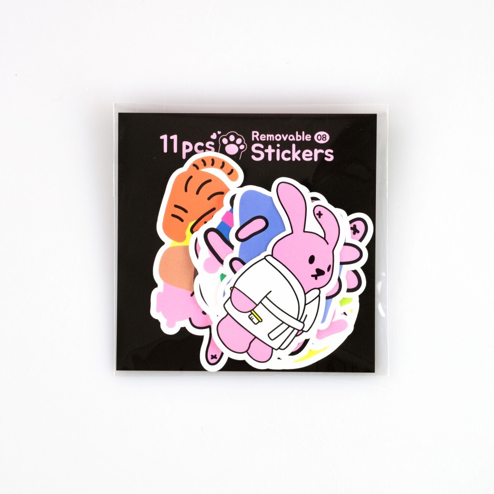 일반 종이가 아닌 PET로 제작되어 두께감이 있고 탄력이 있으며 내구성이 강합니다. 제거가 용이하기에 랩탑, 태블릿 등 다양한 디바이스를 장식하기에 좋고, 무광 코팅이 되어있어 캐리어, 유리, 벽 등에도 부담없이 부착할 수 있습니다.