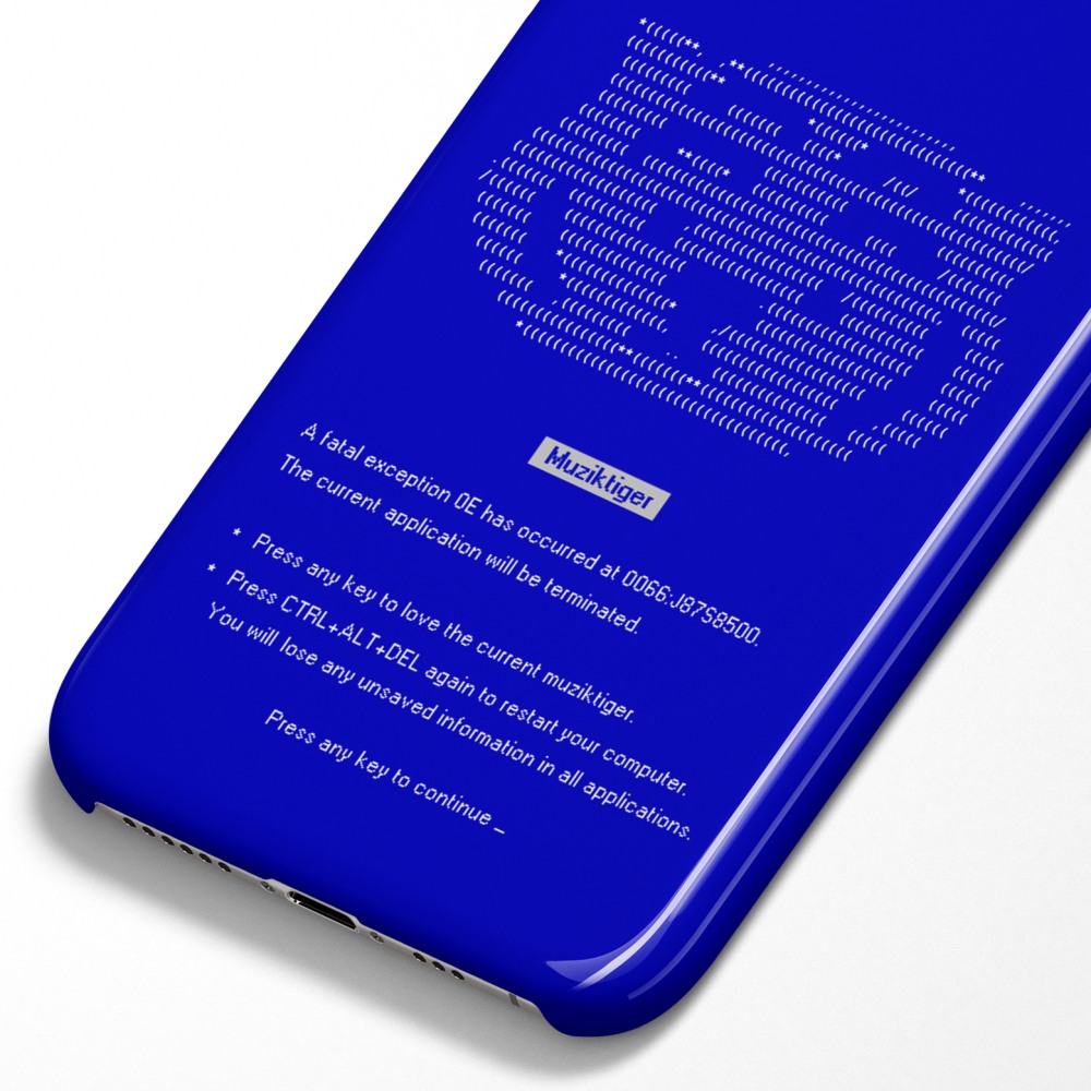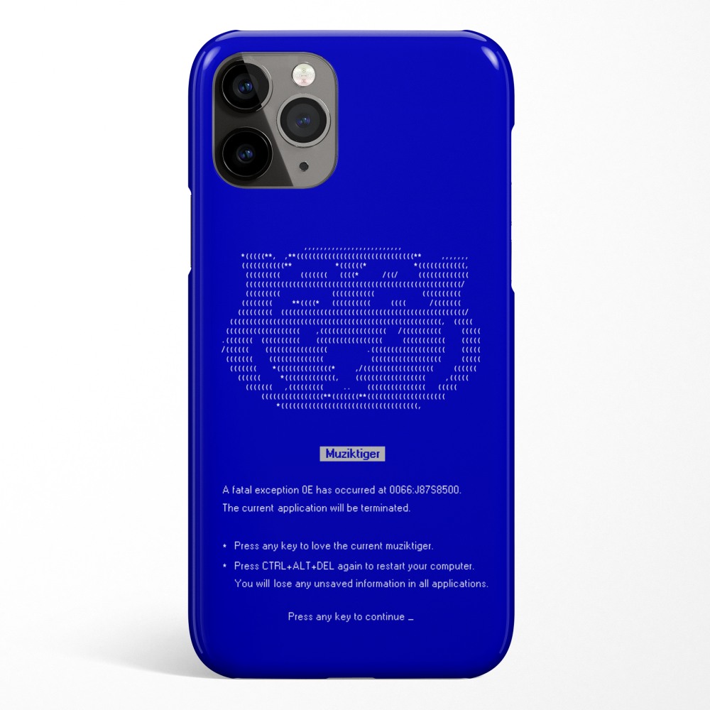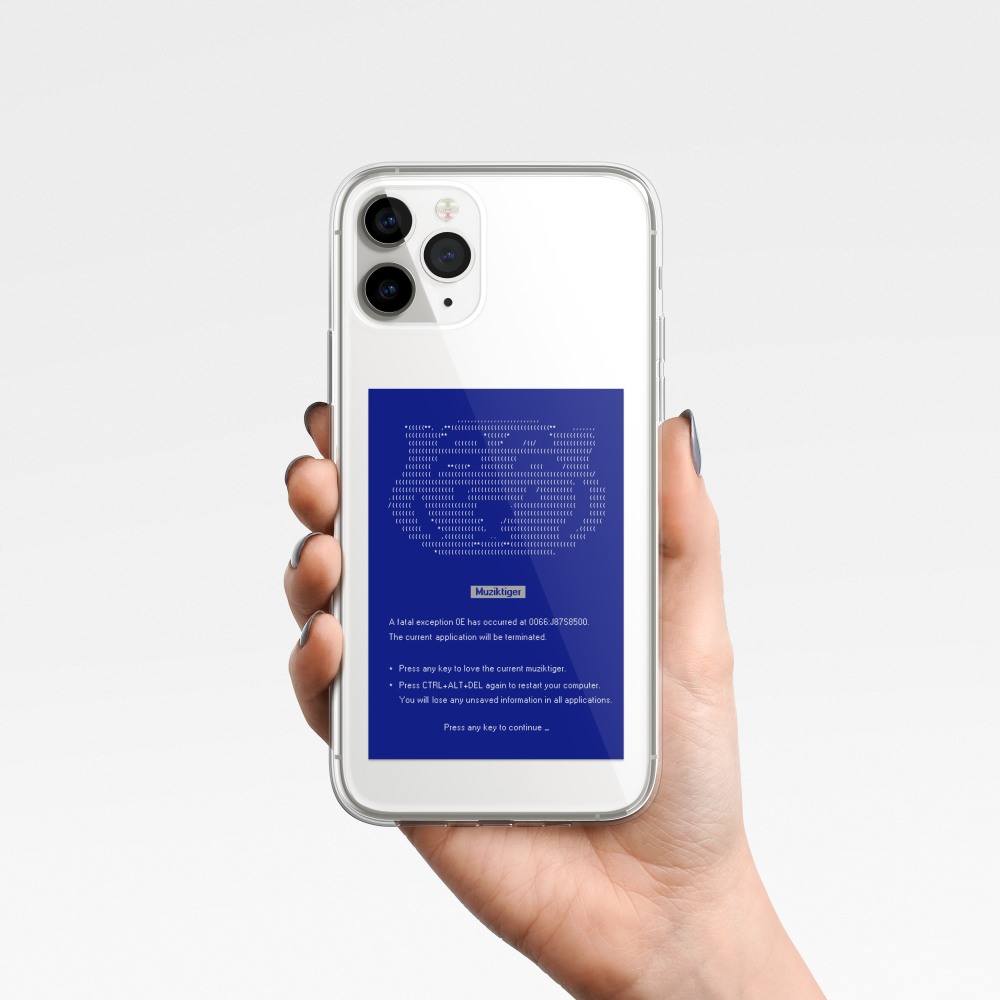 레트로 그래픽 타이거 2 폰케이스에는 오류로 블루스크린과 블랙스크린에 갇힌 뚱랑이의 모습이 담겨있어요!
