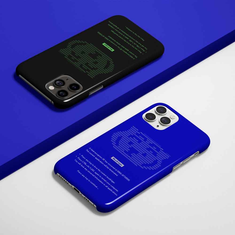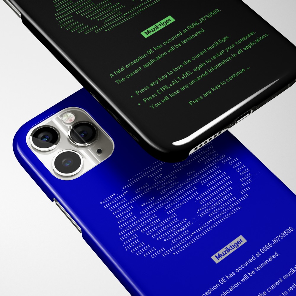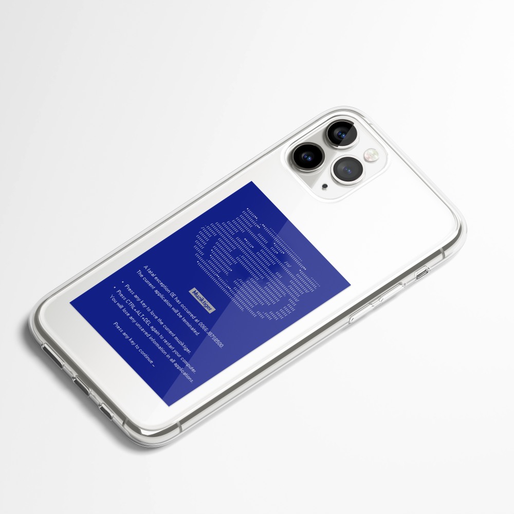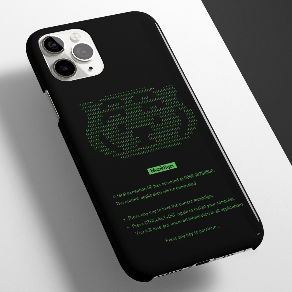 레트로 그래픽 타이거 2 폰케이스에는 오류로 블루스크린과 블랙스크린에 갇힌 뚱랑이의 모습이 담겨있어요!
