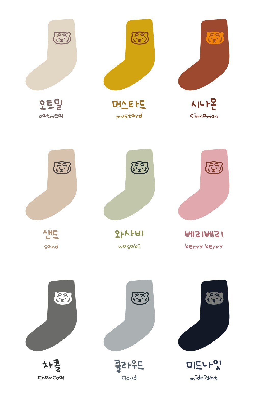 뚱랑이 데일리 컬러 양말 9종