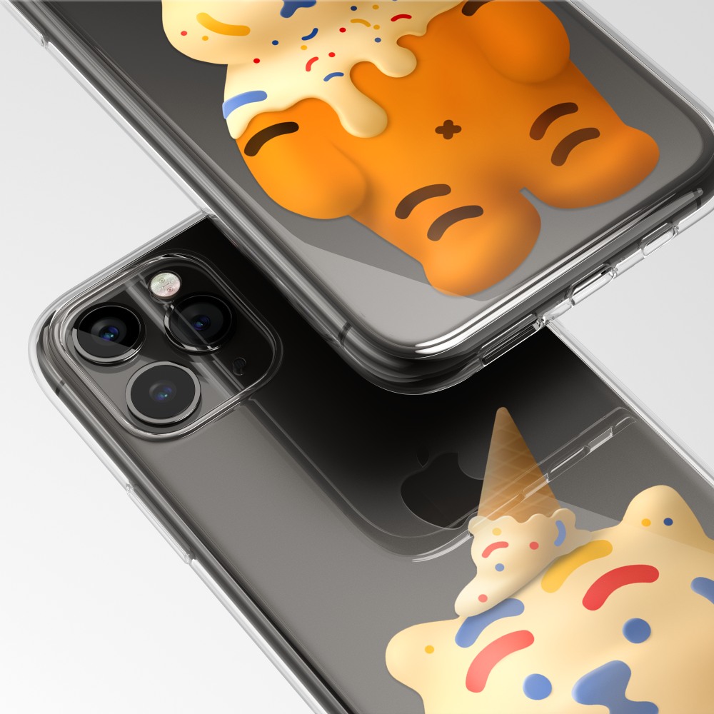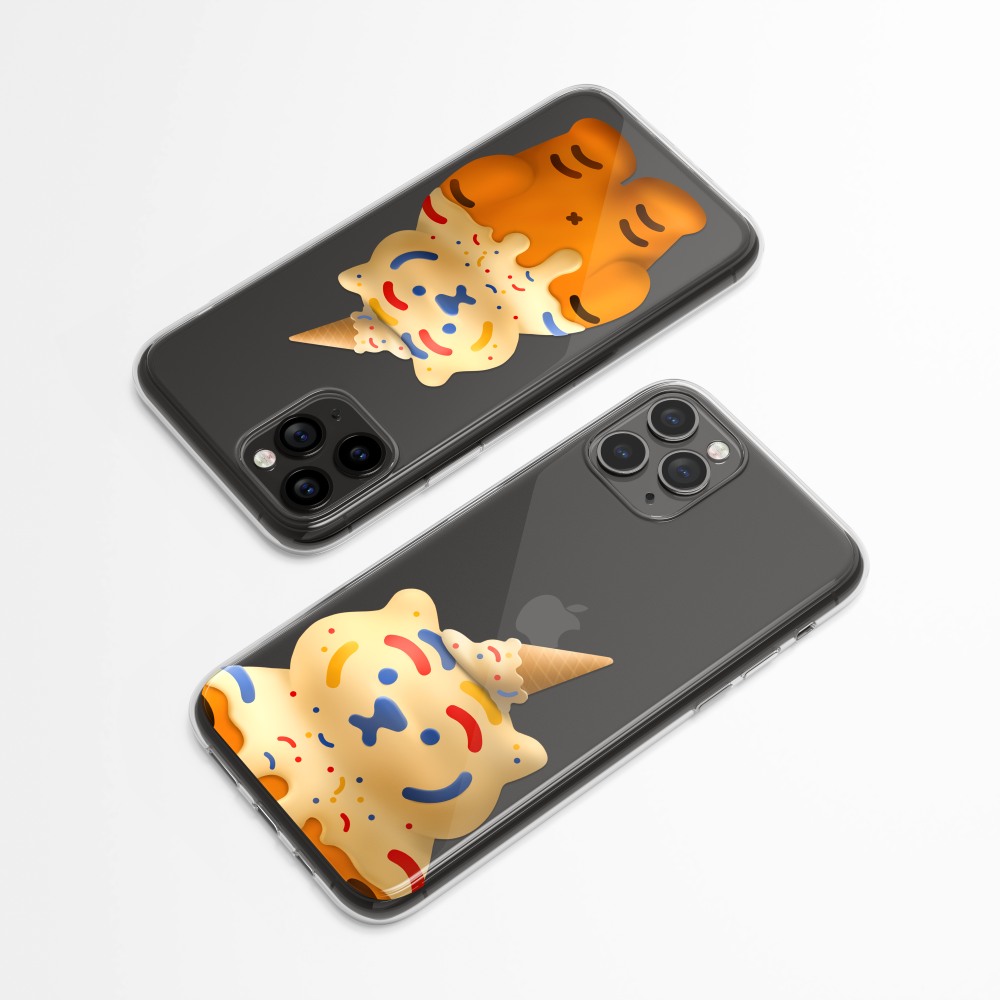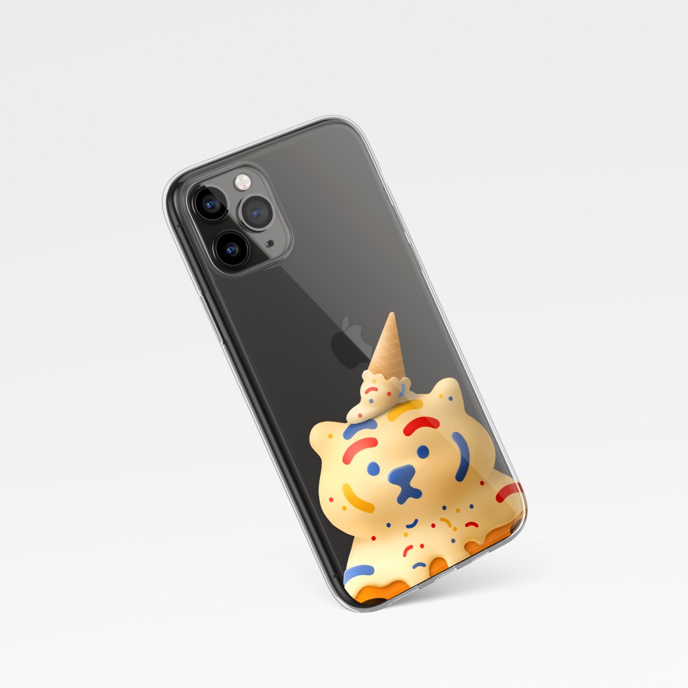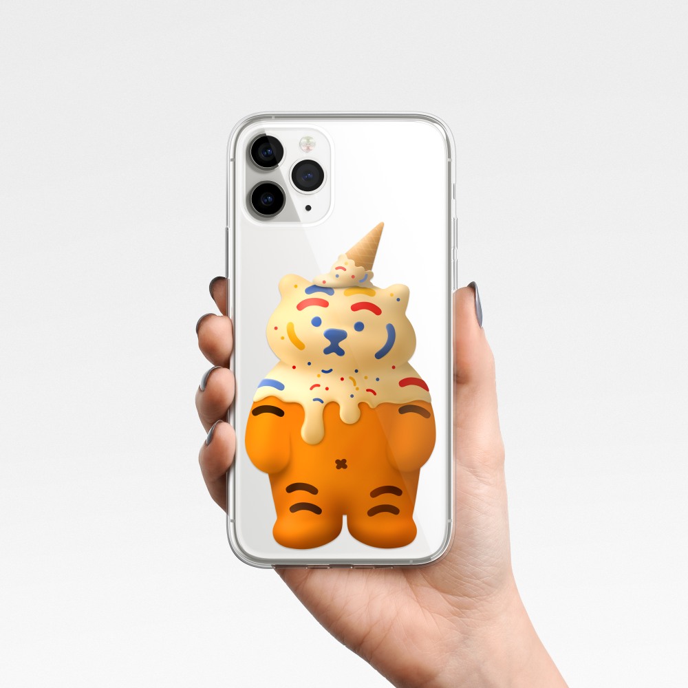 달콤랑 폰케이스에는 아이스크림을 뒤집어 쓴 뚱랑이가 담겨 있어요.