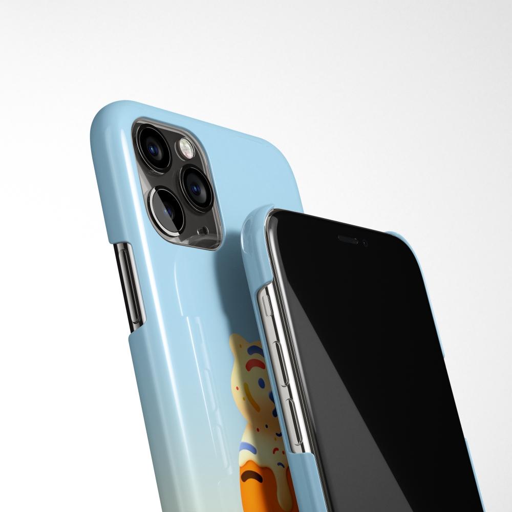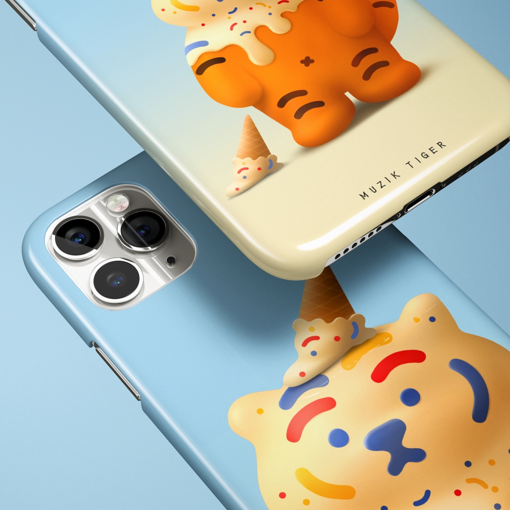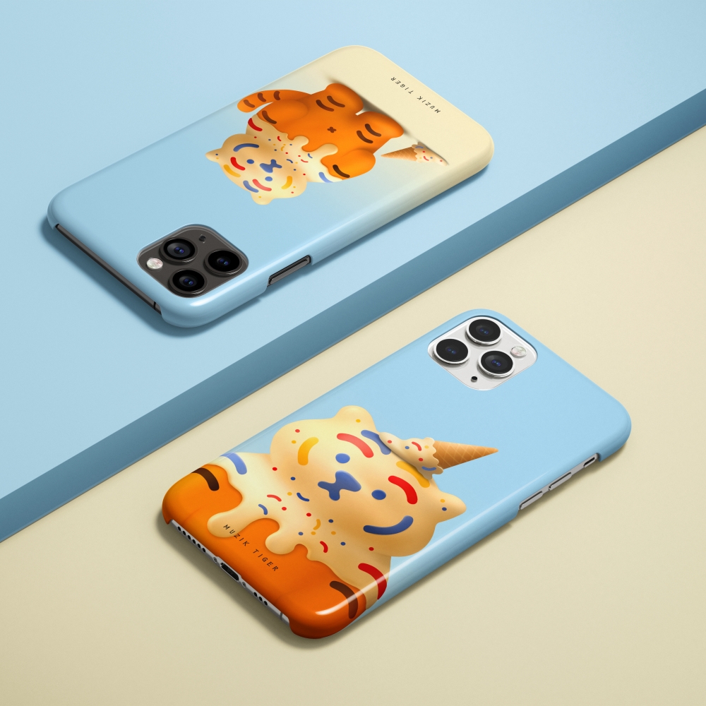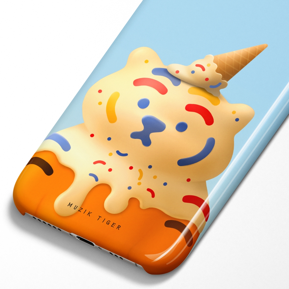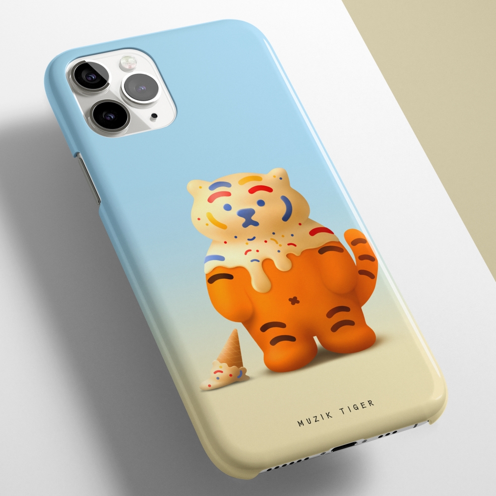 달콤랑 폰케이스에는 아이스크림을 뒤집어 쓴 뚱랑이가 담겨 있어요.
